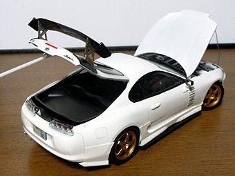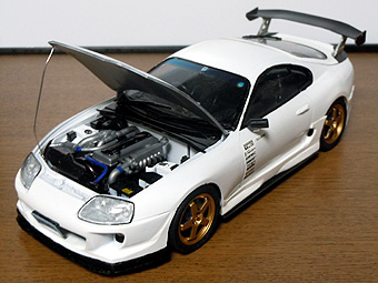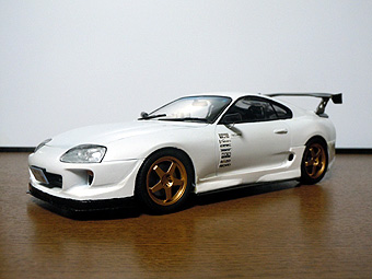 TOYOTA Supra JZA80 RIDOX Ver <元:タミヤ製・1/24> RIDOXはレーシングドライバー織戸学のプロデュースするブランドで、 エアロパーツなどを販売している。 このモデルはそのRIDOXのエアロを再現して製作したものです。 通常の製品を改造し、リアハッチも開くようにしました。